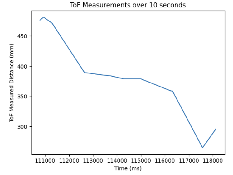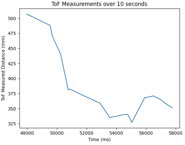 I tested my robot 2 meters away. The video below shows it in action and overshooting a bit and coming back. I used Kp/Ki/Kd values 150/0/30 as I found anything slower than 150 wouldn't cause the robot to overshoot, and I wanted to test overshooting. I also wanted it to be a little jittery and so I tested and found that 30 gave enough adjustments, but wasn't too jittery. I didn't change Ki as I saw a large enough improvement from what I wanted with Kp and Kd. I used the short range mode for the same reasons as in lab 2 since it is more accurate and had still had decent range.