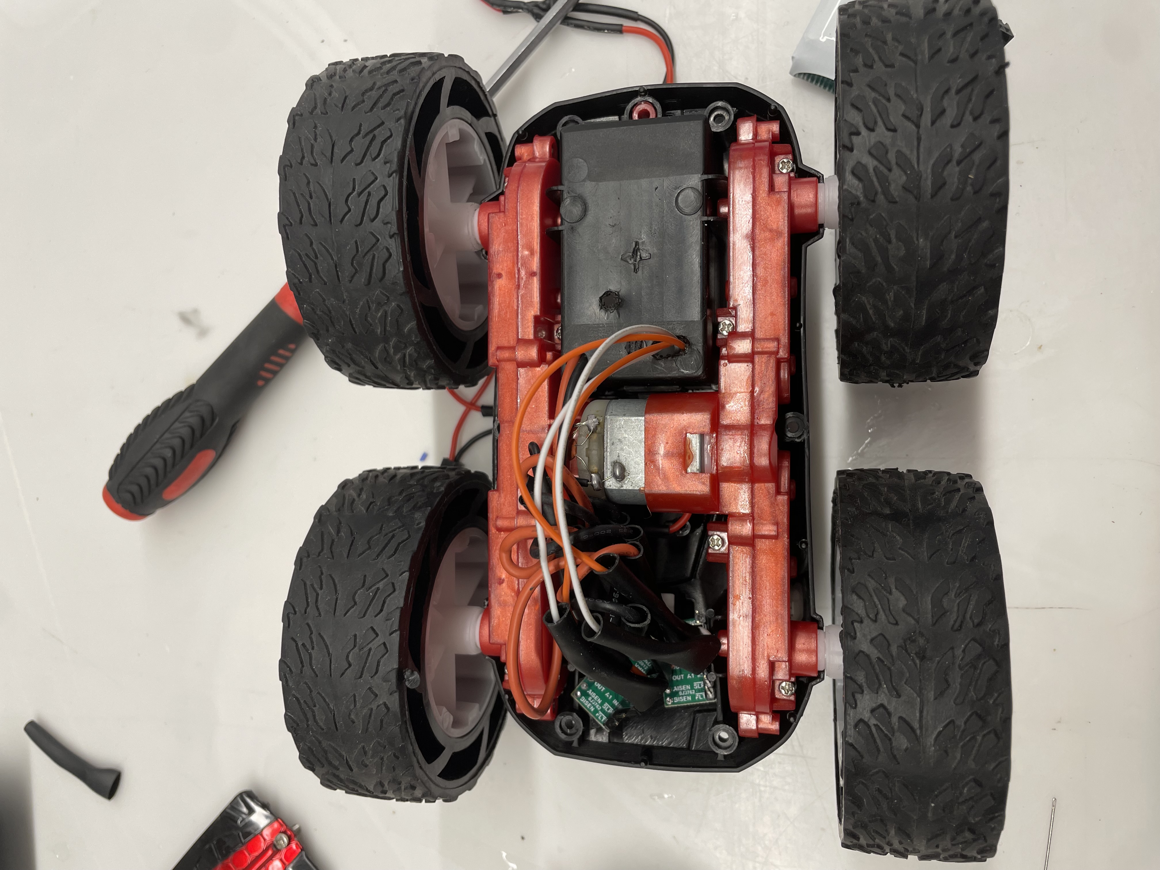 Below is how I wired and stuffed everything down. I taped the orange and white PWM signal wires to the left side of the robot.