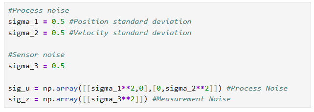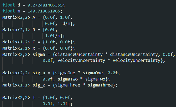 I then defined my process noise and sensor noises. I will discuss later the noises I ended up with.