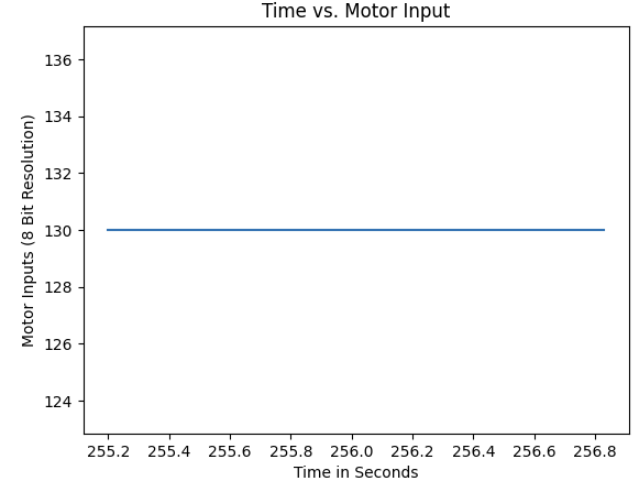 I used a pwm value of 130/255 which is 0.509803921569 the max PWM/u I can give to my robot. I then drove my robot into the wall at a constant 130/255 about 1.8 meters away for 2 seconds as seen in the video below.